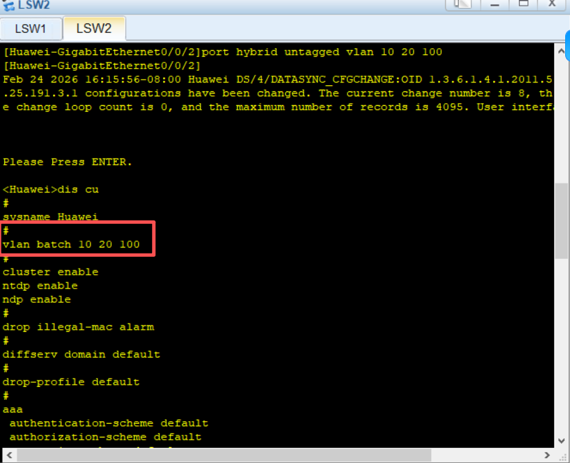 以华为设备为例配置hybrid口进行同VLAN通信: