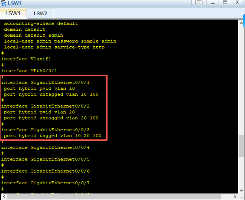 VLAN三种接口模式:access,trunk,hybrid;数据本身不存在标签,根据VLAN协议,会在数据中加入tag,而tag中存在VLAN ID,这个就是我们需要在VLAN接口中与PVID进行和与trunk,hybrid列表中对比的数字。