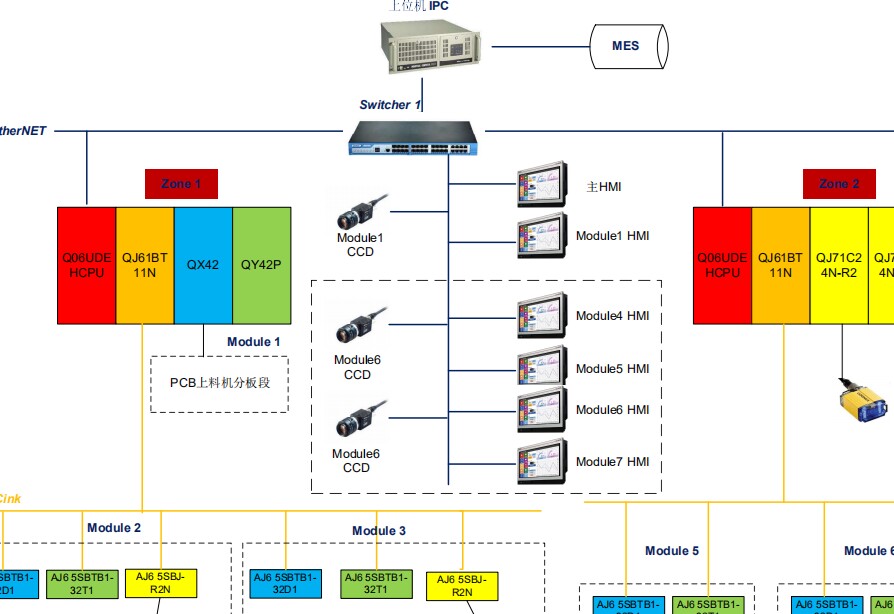 在自动化行业摸爬滚打的老司机都知道,真正能让你从菜鸟变大佬的往往是那些大型项目的实战经验。这次要聊的这个三菱Q系列产线项目,堪称是结构化编程的教科书级案例——两台Q06HCPU扛把子,带着6台威纶通触摸屏,15个工位流水线直接玩转整条产线,这架构设计够硬核。