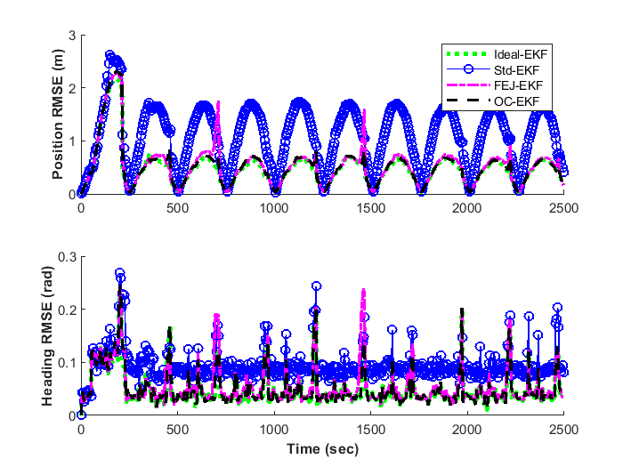 OC - EKF(Observability - Consensus EKF,基于可观测性一致性的扩展卡尔曼滤波):OC - EKF 考虑了系统的可观测性,通过分析系统状态的可观测性条件,对滤波过程进行优化。它利用可观测性矩阵来调整状态估计的权重,使得估计更集中在可观测性较好的状态变量上,从而提高整体的估计精度。在复杂环境中,OC - EKF 能够更好地应对部分状态不可观测或观测噪声较大的情况,提升滤波性能。