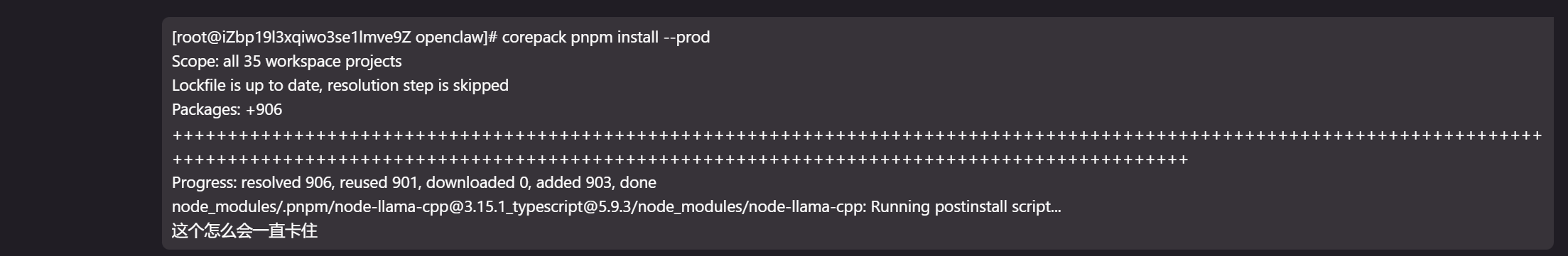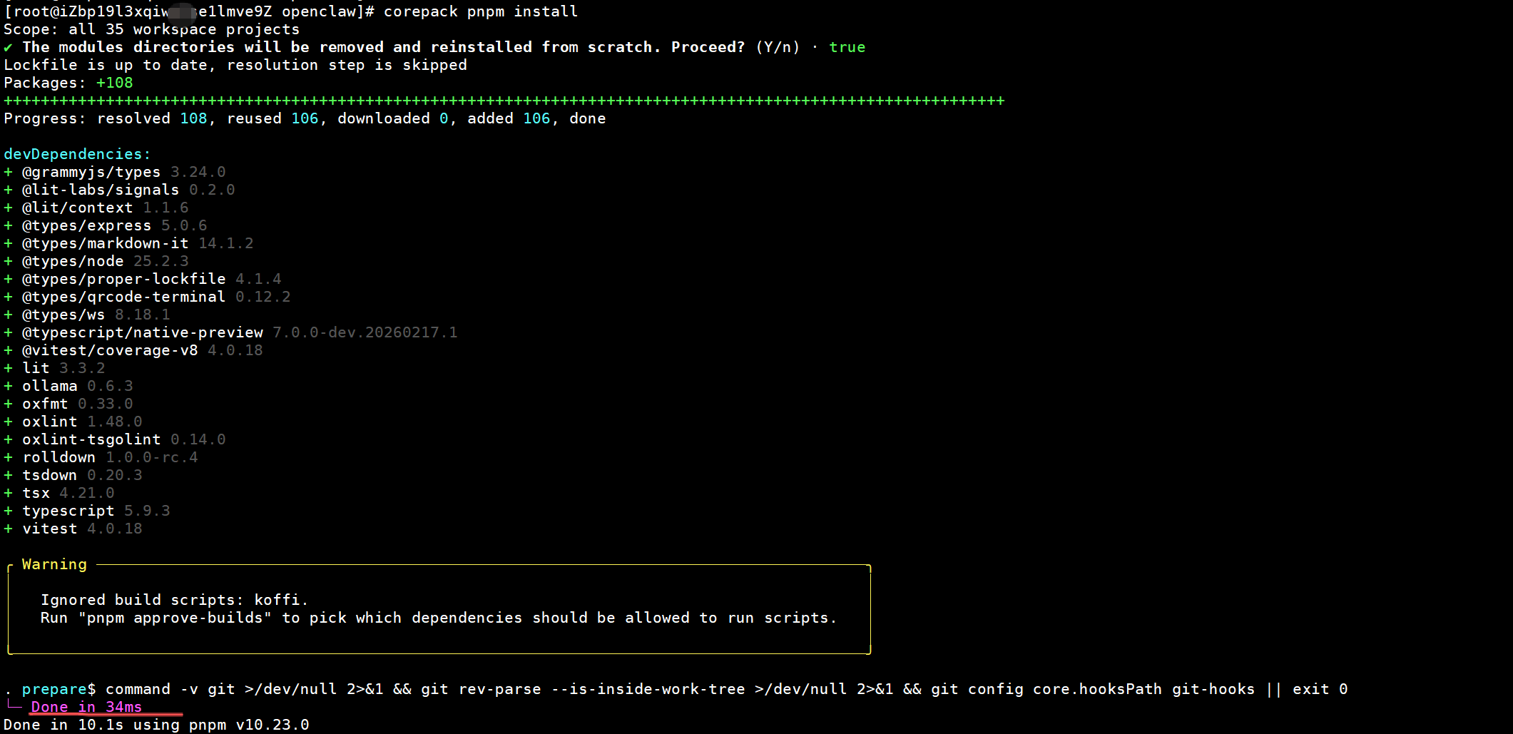 进入openclaw && corepack pnpm install