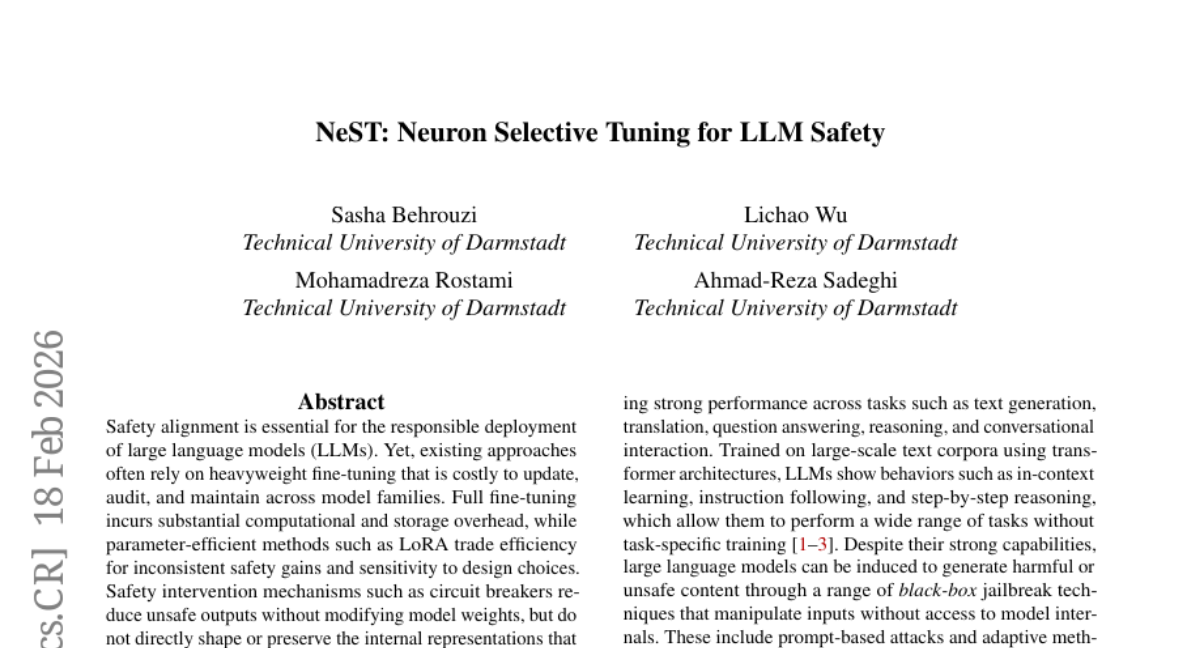想要让人工智能聊天机器人既聪明又听话,就像训练一只既能抓老鼠又不会乱咬人的猫一样困难。最近,德国达姆施塔特工业大学的研究团队在这个领域取得了重要突破。他们的研究成果发表在2026年2月的计算机安全顶级会议论文集中,论文编号为arXiv:2602.16835v1,为解决大型语言模型的安全对齐问题提供了全新思路。