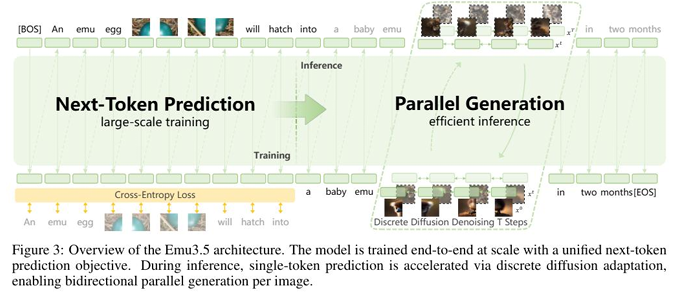 Emu3.5的**“预测”与“加速”:**Emu3.5的架构服务于其“世界模型”的定位。