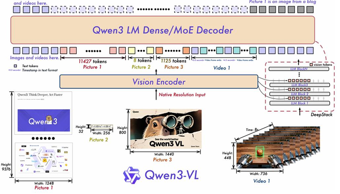 Qwen3-VL的**“深”与“长”:**Qwen3-VL的架构设计核心在于解决多模态长上下文的挑战。