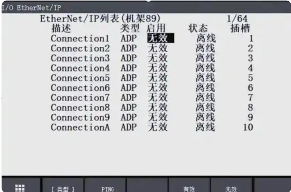 重启完成后,重头戏来了。进入 MENU -> I/O -> EtherNet/IP。