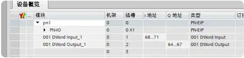 双击Profinet转EtherNet/IP协议网关设备,在设备视图中添加IO模块。我气定神闲的选择了 4 Words Input / 4 Words Output 的配置,确保与前面两步完全一致。