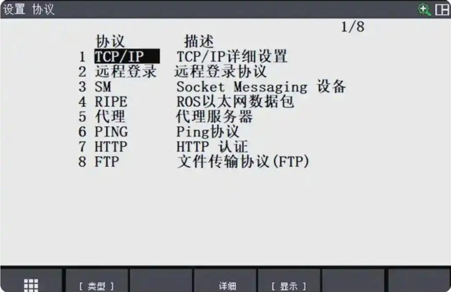 路径:MENU -> 设置 (Setup) -> 主机通讯 (Host Comm) -> TCP/IP。