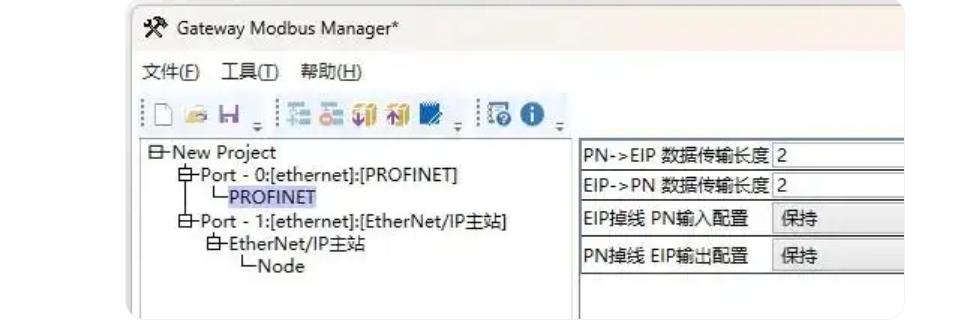 机器人这边搞定了,接下来轮到今天的主角:Profinet转EtherNet/IP协议网关。我打开专用的配置软件,新建了一个 PN2EIPm 项目。