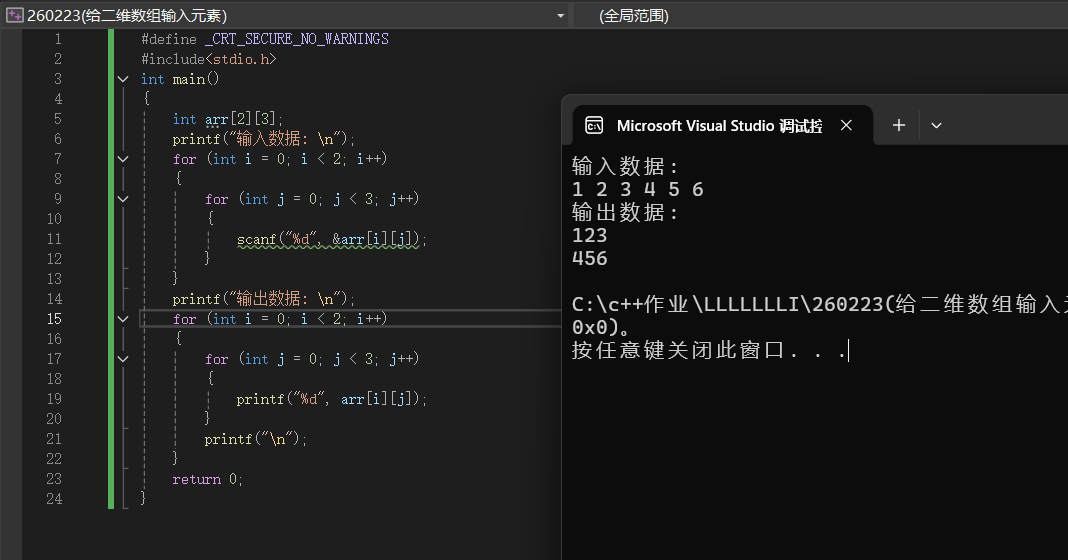 数组本身就是一块连续的存储空间,所以无论是一维数组还是二维数组,我们通过打印地址可以发现内存确实是连续的空间。