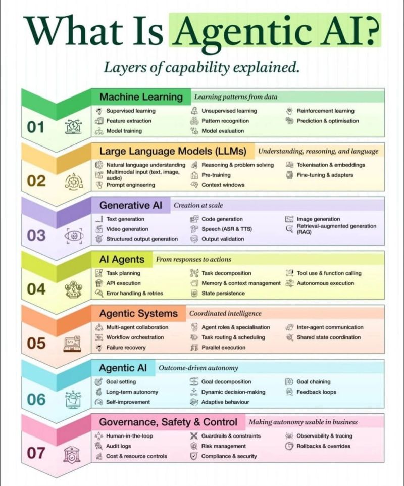 Agentic AI 全解:从聊天机器人到自主智能,7 层能力架构与 5 大核心形态