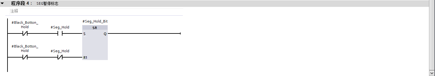 #Black_Botton_Hold(黑按钮再次按下,上升沿)、#OutSeg、#Seg_Hold_Bit(暂停标志为 TRUE)→ 解除暂停;或#OutSeg为 FALSE(分段结束)→ 自动清除暂停