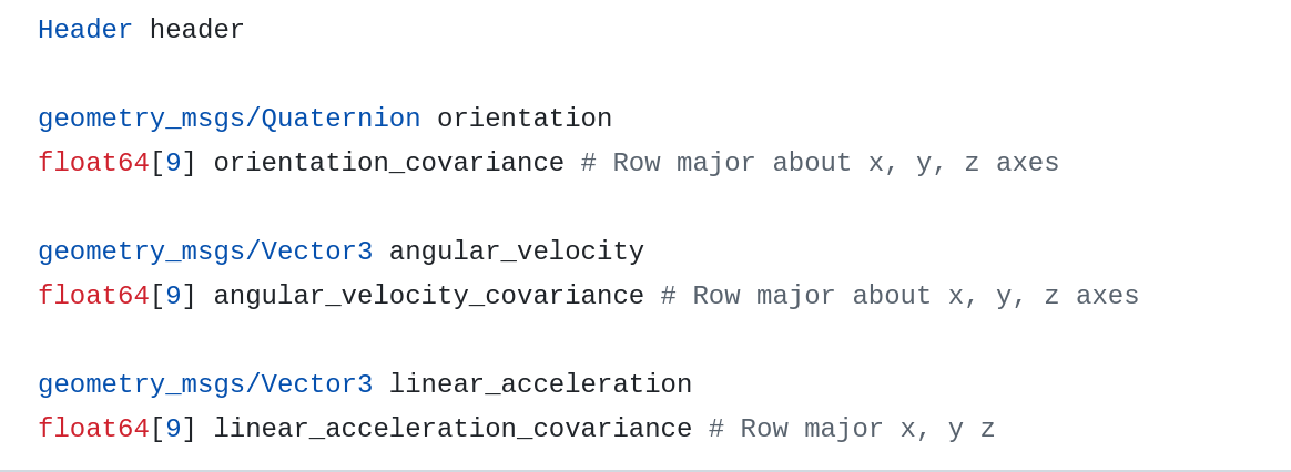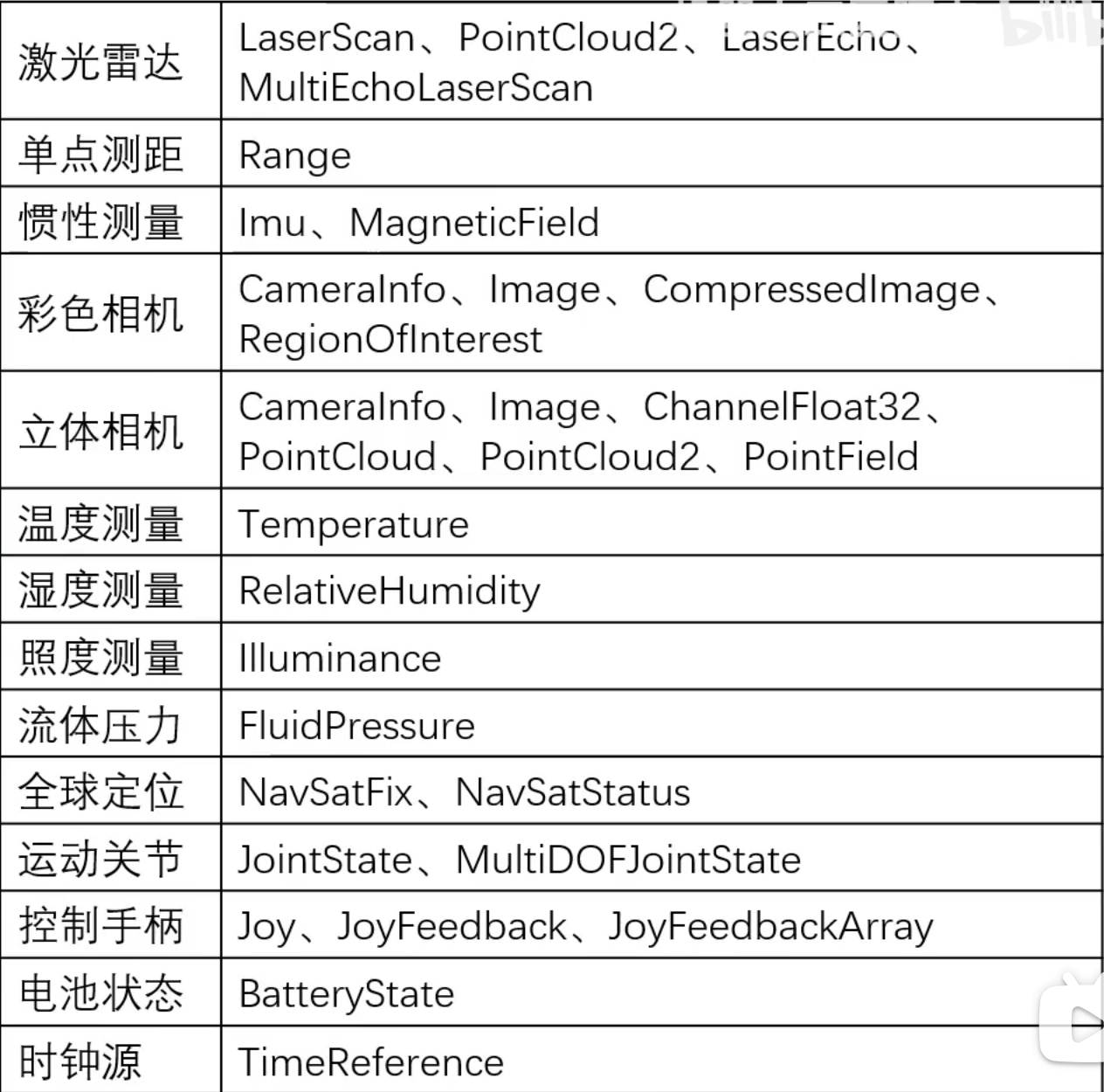 - 不同的传感器消息通常会拥有各自独立话题名称,每个话题只能有一个发布者。