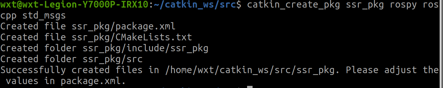 1、使用catkin_create_pkg创建一个软件包:catkin_create_pkg <包名>{依赖项}