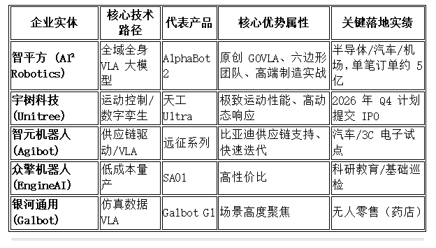 2026年人形机器人5强核心竞争力对比表