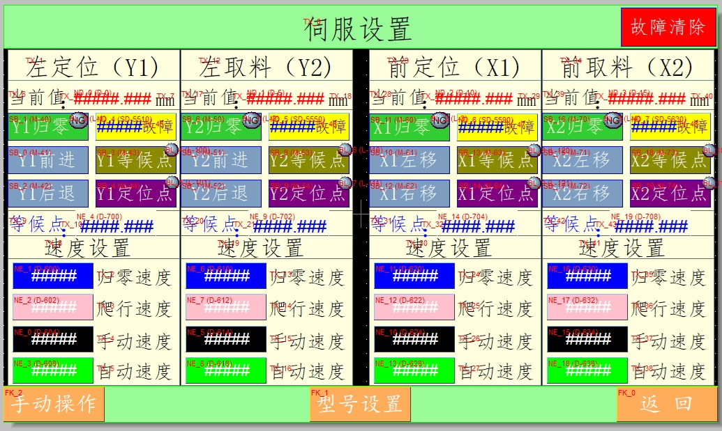 这段代码主要实现了伺服电机的初始化和同步运行控制。初始化部分会把各个伺服参数清零,然后通过输出指令启动伺服电机。同步控制部分则确保四个轴能够协调一致地运行。