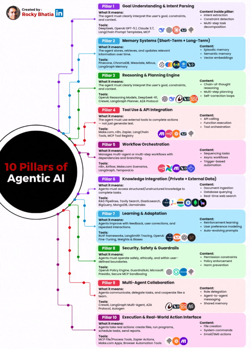 Agentic AI 的十大支柱:从 “聪明的聊天机器人” 到生产级自主系统的完整架构