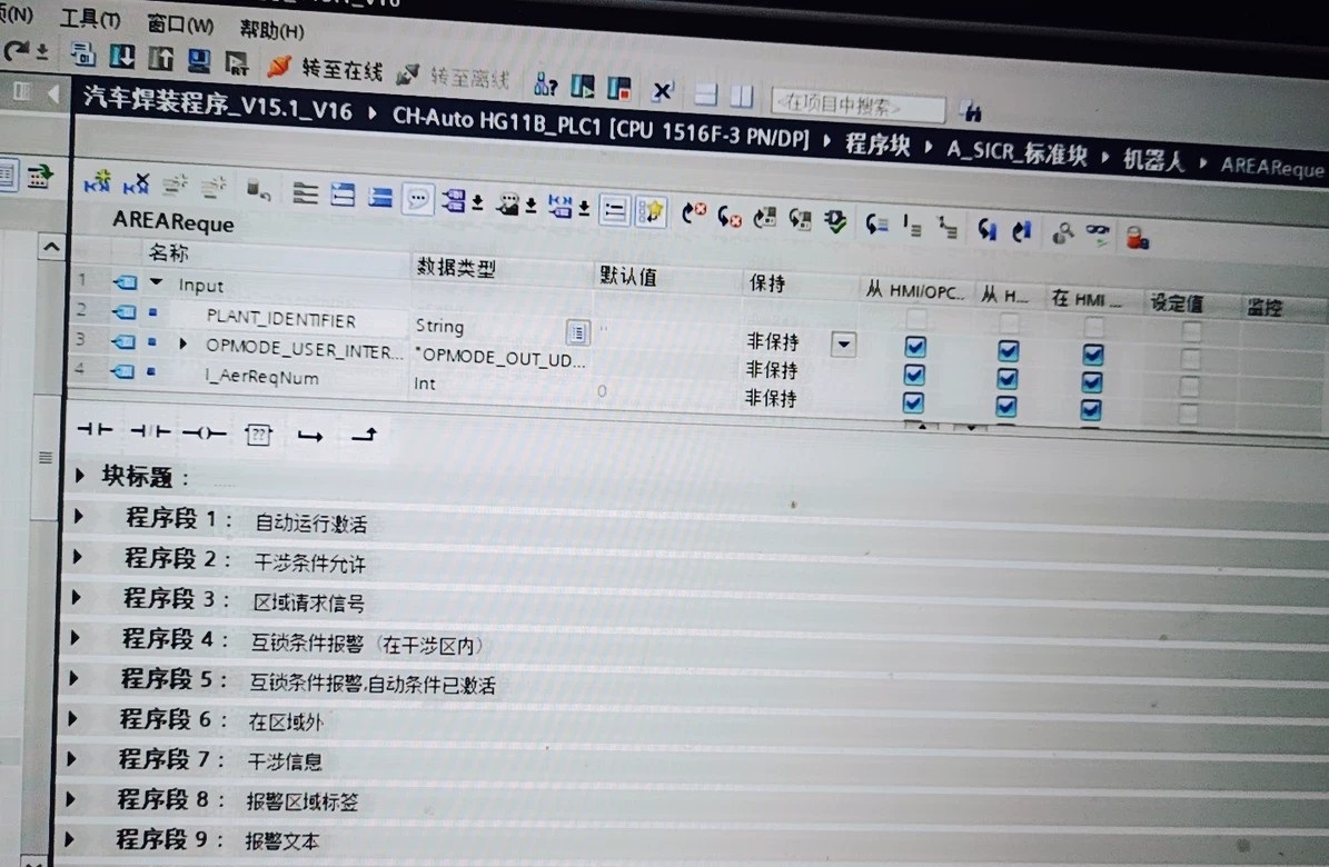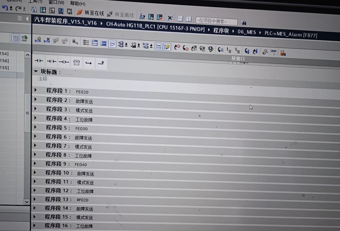 西门子PLC1500大型程序fanuc机器人焊装 包括1台 西门子1500PLC程序,2台触摸屏TP1500程序 9个智能远程终端ET200SP Profinet连接 15个Festo气动智能模块Profinet通讯 10台Fanuc发那科机器人Profinet通讯 3台G120变频器Profinet通讯 2台智能电能管理仪表PAC3200 4个GRAPH顺控程序 图尔克RFID总线模组通讯 和MES生产执行制造系统通讯,西门子安全模块 程序经典,结构清晰,SCL算法,堆栈,梯形图,结构化编程,想学习项目累计经验时间可以借鉴思路博途v15.1以上可以打开,另外可以帮安装博途v15.1及以上版本,plcsim,startdrive。