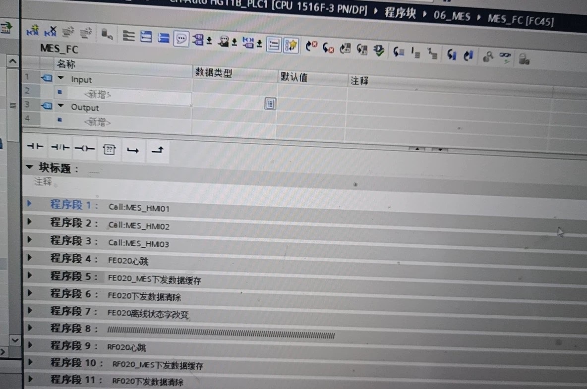 程序架构玩的是模块化套路,OB1主循环里把各个功能块安排得明明白白。举个结构化编程的例子,机器人控制模块封装成FB5000,带个背景DB直接套娃调用: