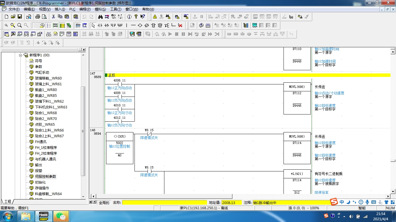最近在研究欧姆龙 PLC CJ2M 的一个超有趣项目,控制 12 个伺服电机和若干气缸,功能丰富得很,像轴点动、回零、相对与绝对定位都有。搞懂这个程序,就像拿到了整个项目程序编写的“武林秘籍”,今天就来跟大家唠唠。
