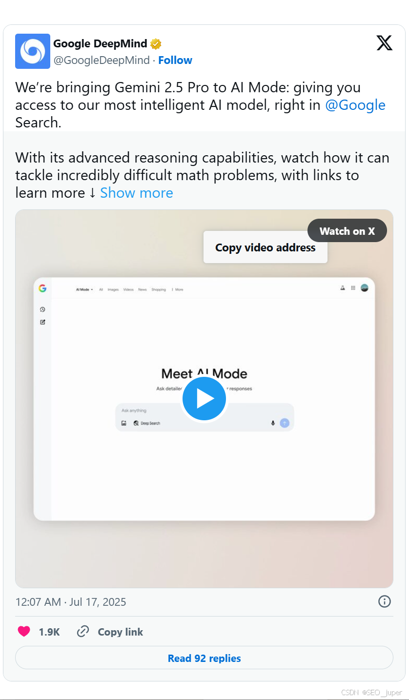 具体来说,该模型通过整合图片、视频及其他媒体,提升了AI模式的回答方式,从而产生更动态、多模态的回答。