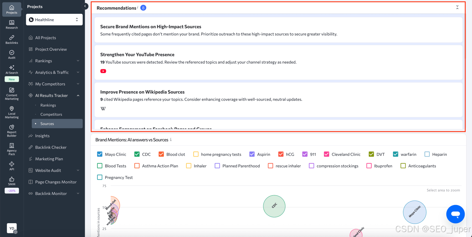 识别谷歌在AI模式下频繁引用的网站,以满足你的目标查询。基于这些数据,你可能会发现加强YouTube影响力、参与Reddit讨论或发布某些类型的内容,可以提高被引用的机会。