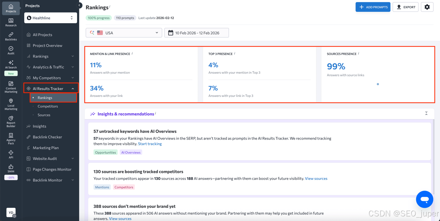 AI模式正在加速,所以你绝对需要在这里监控自己的可见度。而SE Ranking的AI模式追踪器在这方面可以成为很好的辅助。