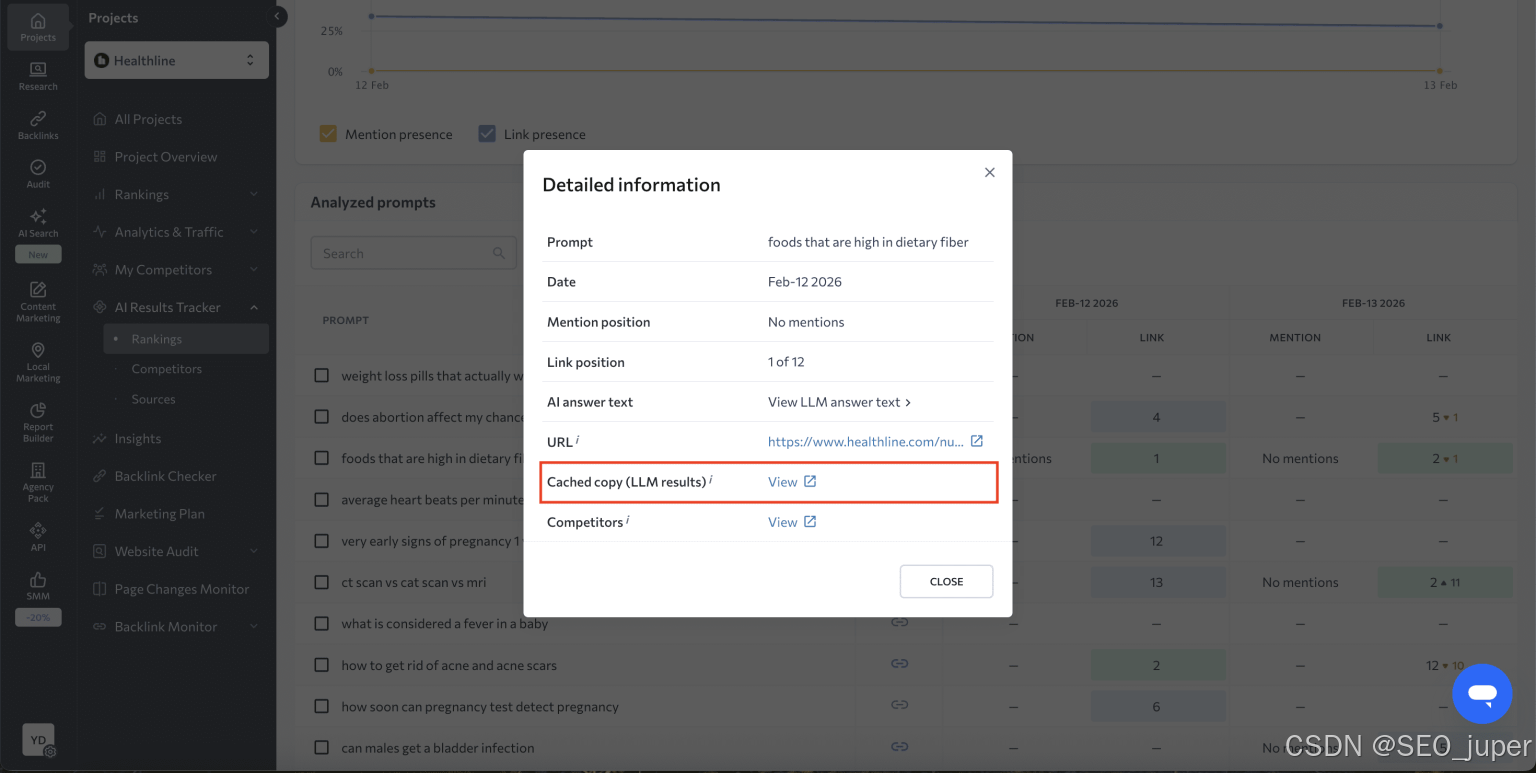 在这里,你可以看到AI回答的缓存副本,并准确检查你的品牌在哪里以及如何被展示。