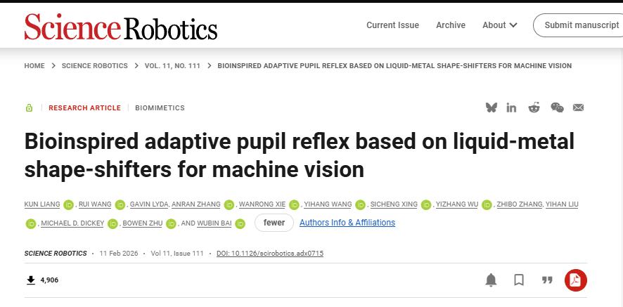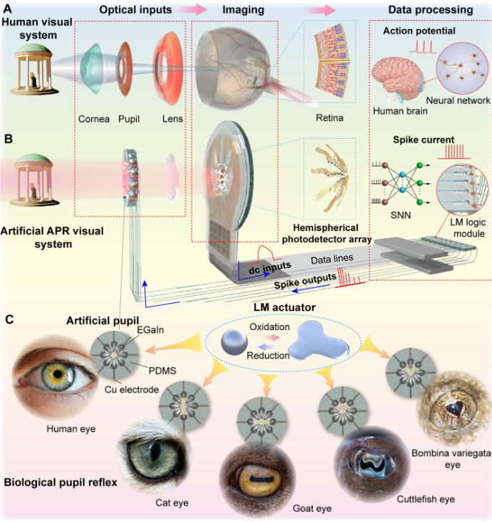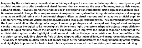 近日,发表于顶级期刊 《Science Robotics》 的一项研究,为我们带来了一种全新的解决方案:一种基于液态金属形状变形器的仿生自适应瞳孔反射(APR)视觉系统。