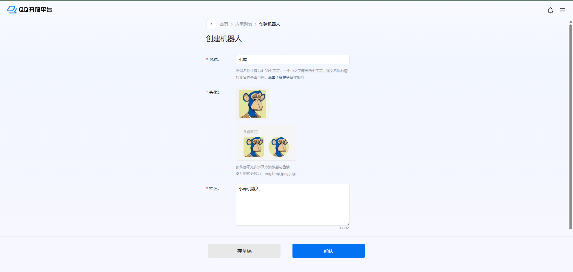 创建一个机器人,具体的配置方式请参考 :QQ机器人配置方法