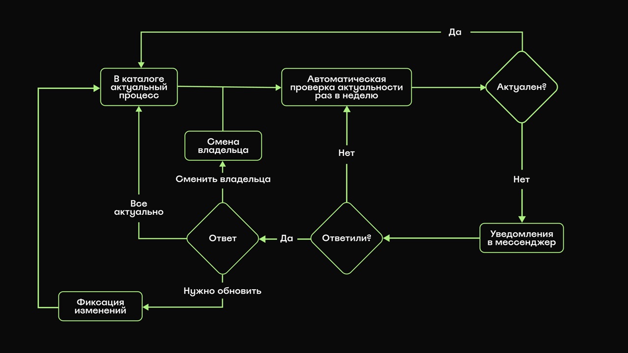 在奥斯特罗夫卡(拥有数千名员工、分散的团队、多个产品方向以及全天候运营),我们全面遇到了这一问题。流程目录开始建立起来,但很快便清楚:仅靠它本身并不能创造价值。很少有人能读懂BPMN图,而手动维护描述的最新性既昂贵又不稳定。