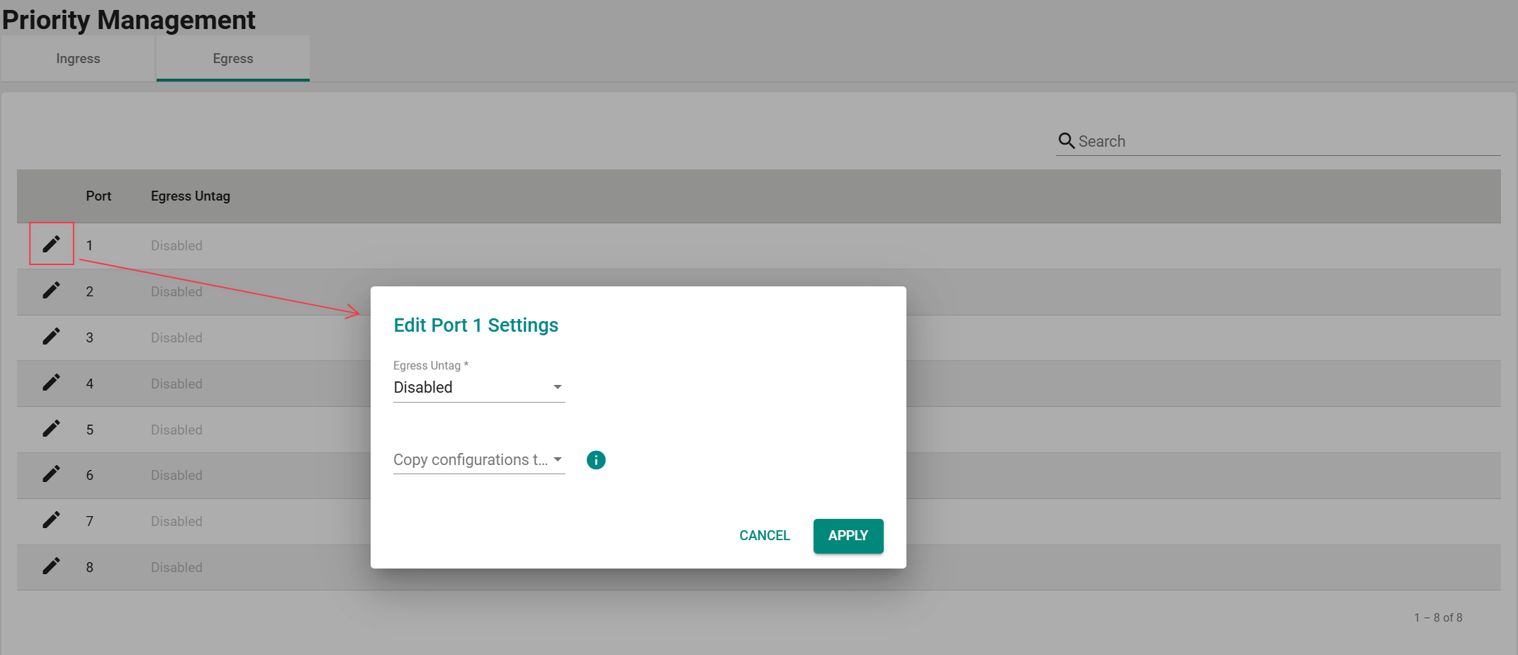 出口设置:点击出口选项卡,选择要配置的端口并点击编辑图标