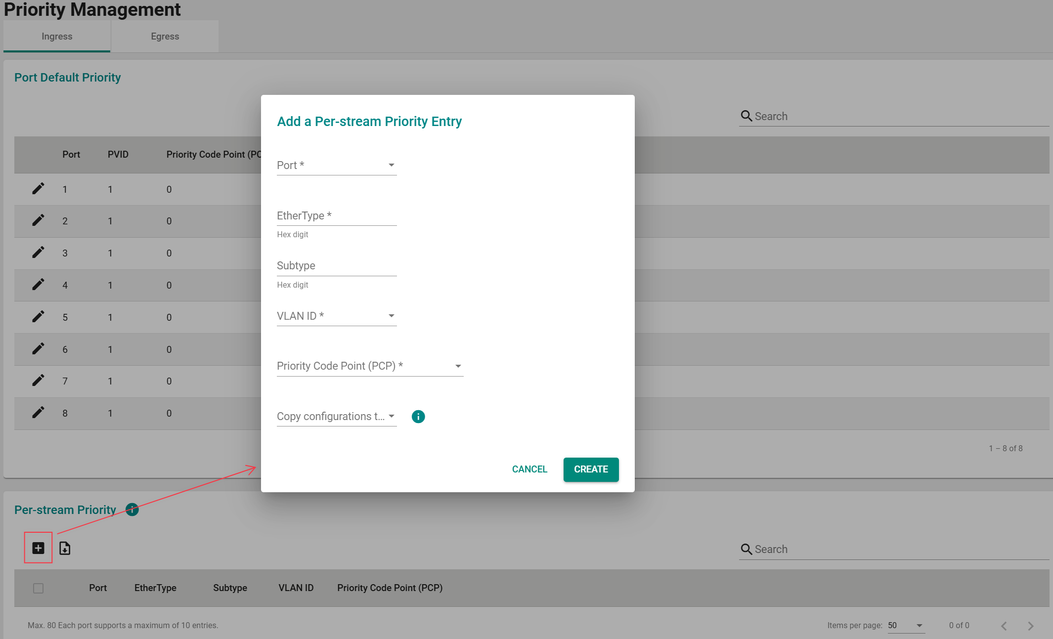- 选择要添加的流优先级端口