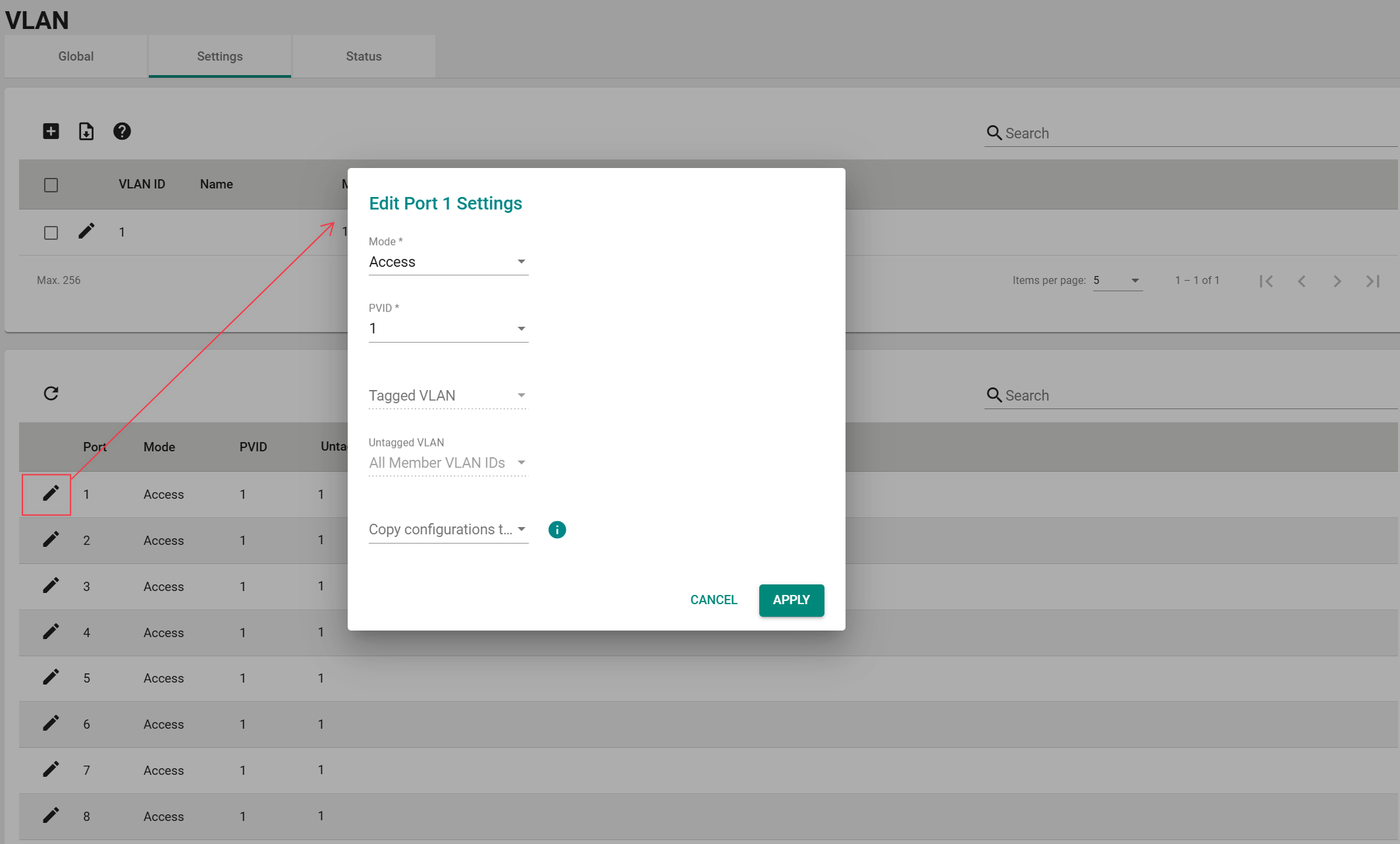 - 为连接到该端口的未标记设备设置默认VLAN ID (1 to 4094)