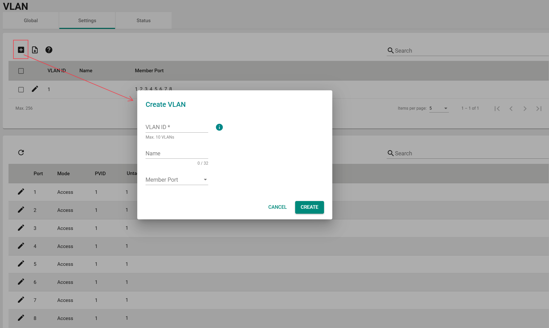 VLAN管理端口的快速设置