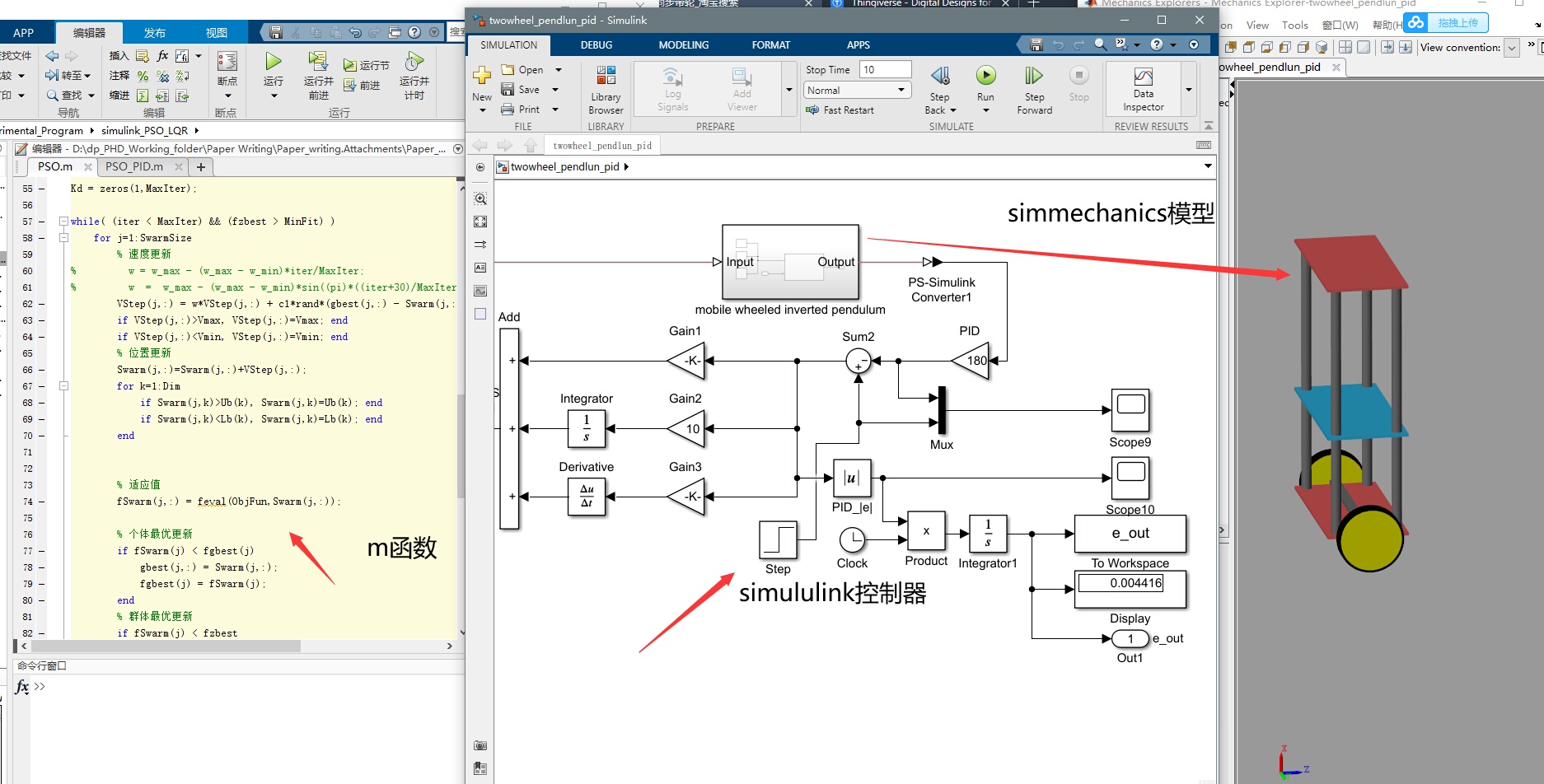 机器人研究数模实验方案PID控制,m函数调用simulink中的控制算法,在simscape Multibody中的物理模型中测试。 跑通模型花了很多时间,这个能帮你节省下时间。 方法适合所有机器人研究,机械臂、无人机,无人车的镇定、轨迹追踪控制算法,有sw模型就可以搭建仿真平台。