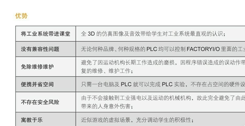 FactoryIO十字机械手组装工作站仿真实验程序【程序原创】使用简单的梯形图编写,逻辑清晰,通俗易懂,写有详细注释,起到抛砖引玉的作用,比较适合有动手能力的入门初学者。加工中心的机器人不是真正的机器人,是仿真软件的一个部件,通过简单的IO控制,机器人执行固定的动作。软件环境:1、西门子编程软件:TIA Portal V16(博图V16)内容清单:1、FactoryIO中文说明书+场景模型文件2、