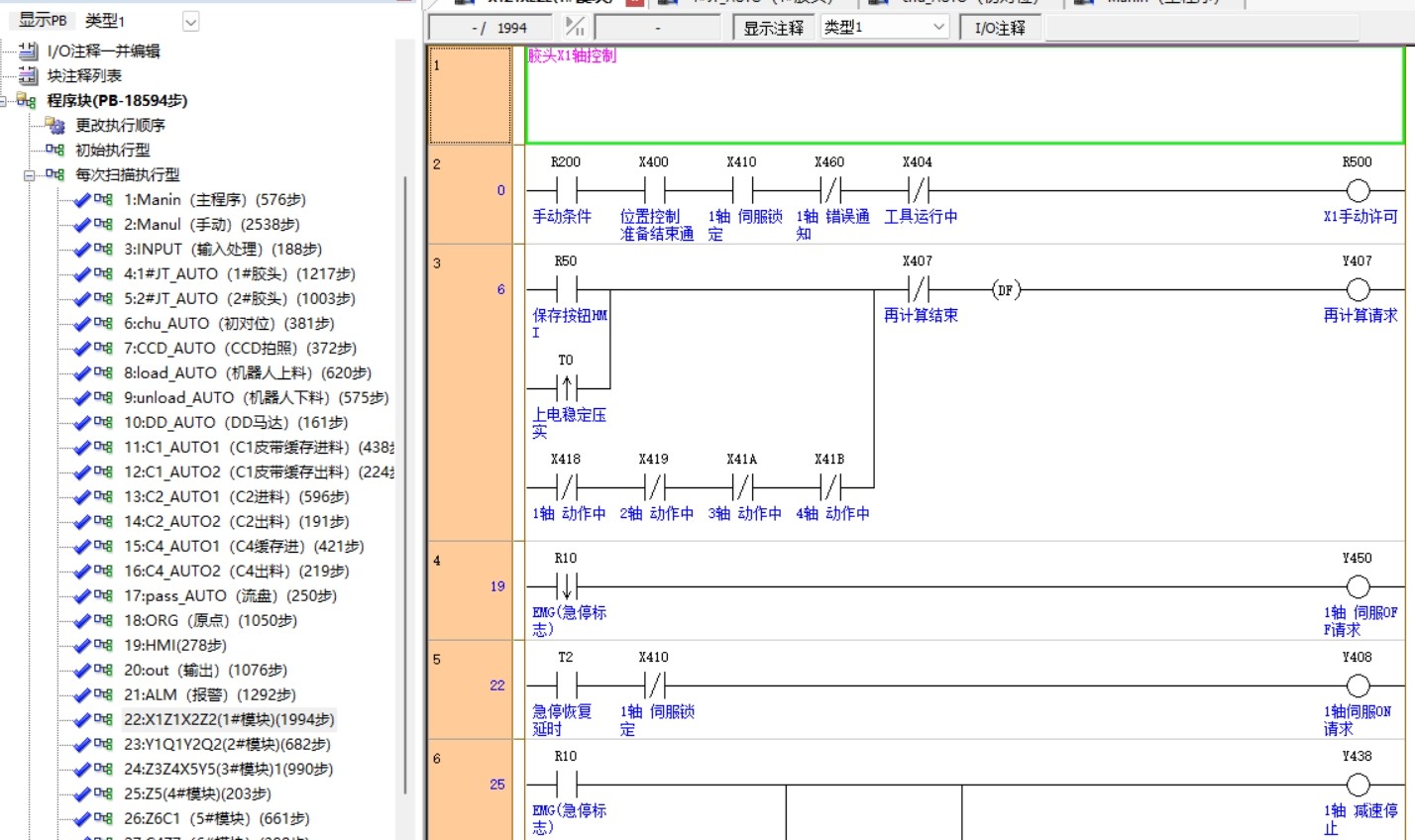 FP7 PLC的主程序结构清晰,主要分为几个功能模块: