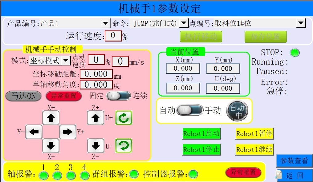 系统中还集成了ProEasy系列机器人,机器人程序采用Lua语言编写,与PLC程序协同工作。机器人程序的主要功能是根据PLC提供的位置信息,执行相应的动作。
