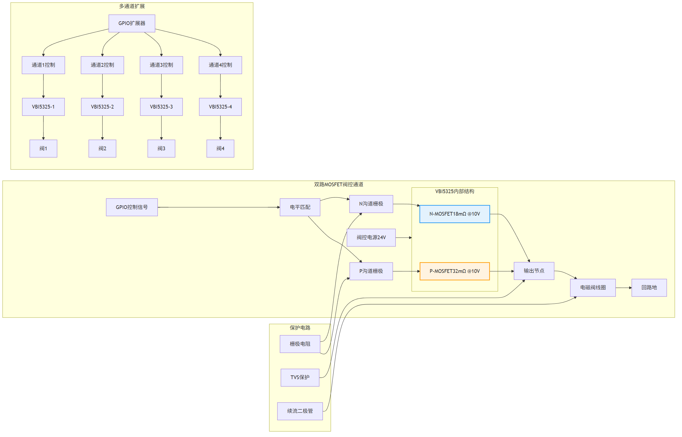 - 多路阀控MOSFET(如VBI5325):注意N沟道和P沟道栅极驱动逻辑的匹配与隔离,避免共态导通。