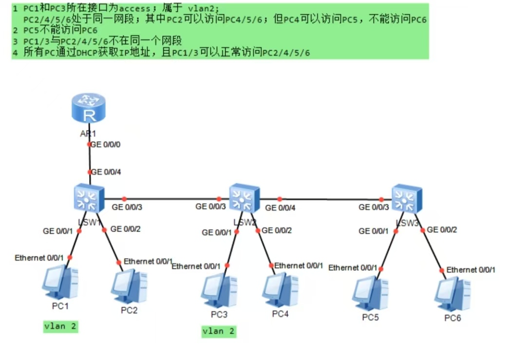 | PC1/PC3 ping PC2/PC4/PC5/PC6 | 全部通 |