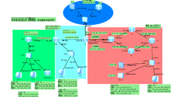 - 一片网一片网配 所以先配置area1 使pc自动获取地址 先改名再配置路由 每个端口配上IP地址 注意因为要实现全网可达 vlan间就要相互通信 就要给路由配置上子接口 子接口配置相应vlan的网关地址 然后就对路由器DHCP配置