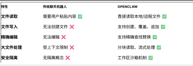 ChatGPT、豆包这类工具,你问它问题,它给你回答或建议,但不会帮你动手做事。而OpenClaw不一样,你给它一个指令,它可以自己去打开文件、写代码、发邮件、整理数据、生成报表,然后一步步执行完成。